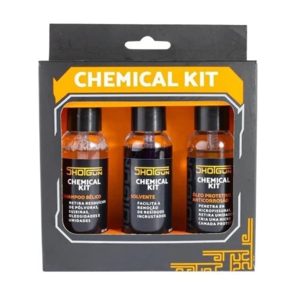 Shampoo Bélico Shotgun(60ml):Remove resíduos de pólvora, sujeira, oleosidade e umidade. Desenvolvido para não agredir metais, polímeros, plásticos ou borrachas, possui aditivos anticorrosivos que protegem os mecanismos internos.