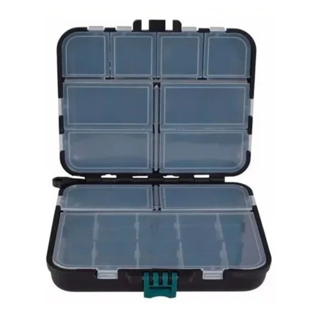 Seja para iscas na modalidade Fly ou itens pequenos como anzóis, chumbadas, snaps, giradores e argolas, este estojo foi projetado para facilitar sua vida, oferecendo praticidade e segurança no armazenamento. Fabricado em plástico de alta qualidade, o estojo possui 12 compartimentos fixos e a possibilidade de expandir até mais 8 compartimentos extras com os separadores inclusos, adaptando-se às suas necessidades. Seu design de dupla face garante melhor aproveitamento de espaço e evita que os itens se misturem. O fechamento central protege os acessórios contra possíveis perdas, e seu tamanho compacto é perfeito para transporte em qualquer mochila.