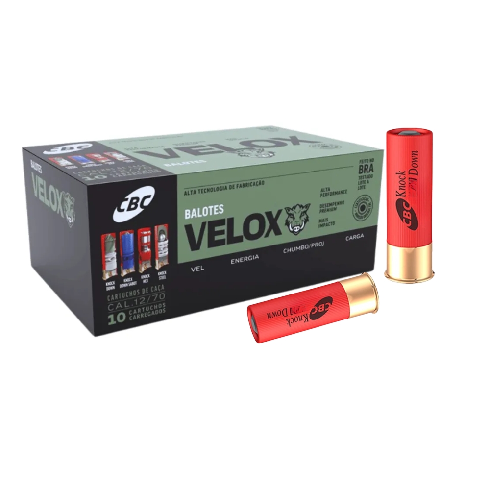 Cartucho CBC Knock Down Calibre 12 Velox – Caixa com 10 Unidades